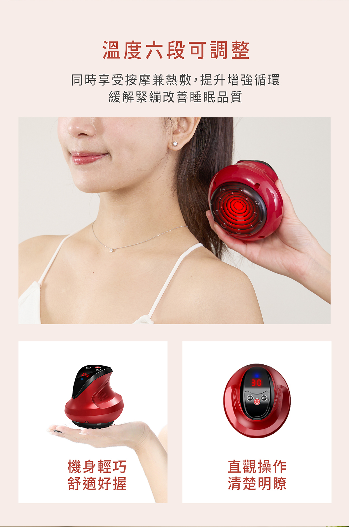 ✔︎ 6段溫度調整,暖心刮痧